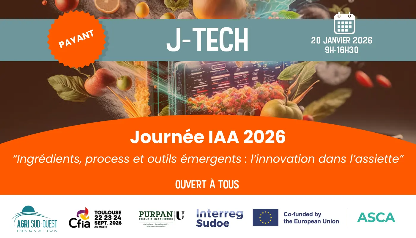 Agri Sud-Ouest Innovation, en partenariat avec l'école de Purpan et le CFIA de Toulouse, vous invitent à une journée technique dédiée à l’innovation agroalimentaire. Au cœur de cette édition : les ingrédients et procédés innovants, véritables leviers pour répondre aux nouvelles attentes des consommateurs et relever les défis du secteur.